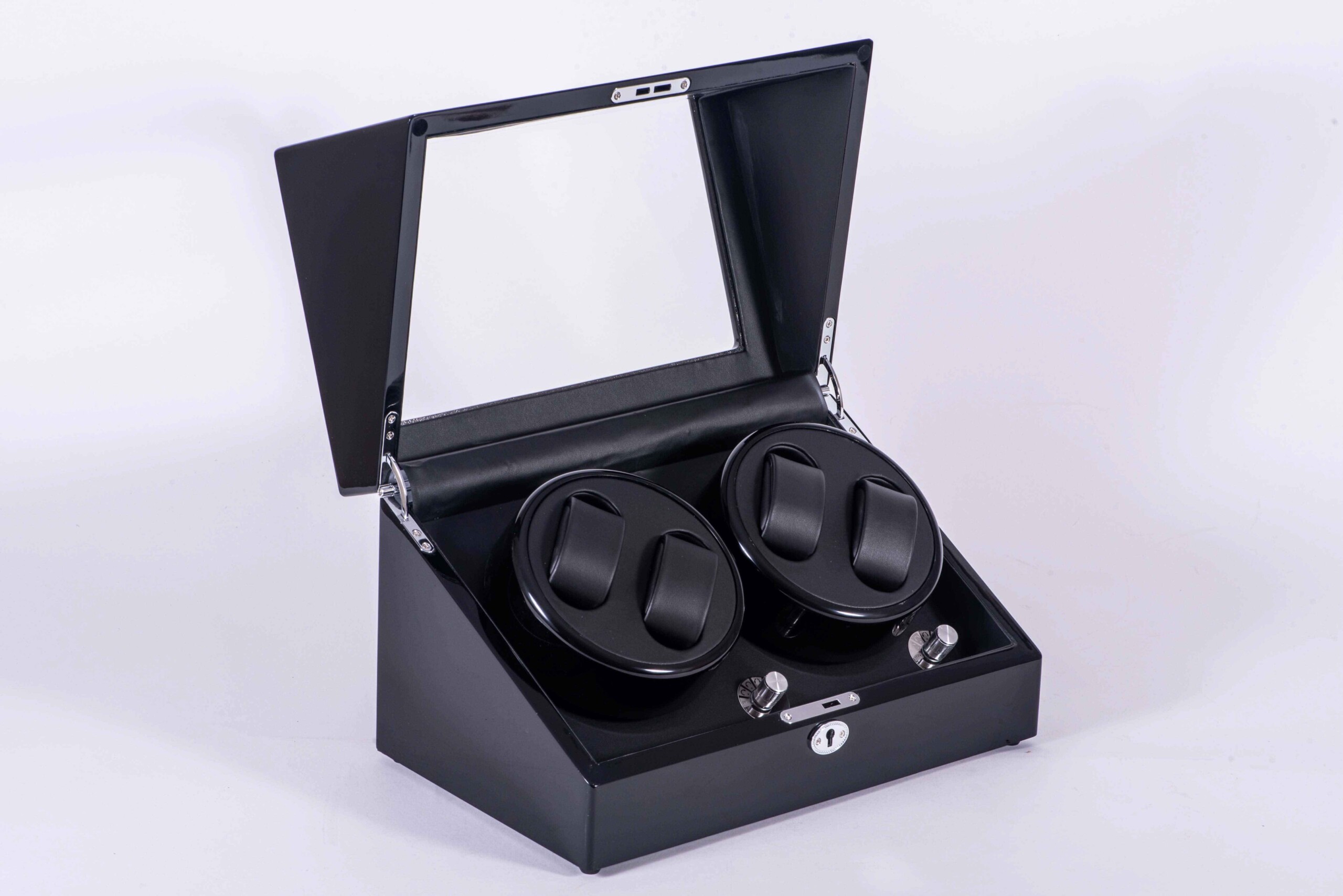 • Az élesen hajlított akril ablakán keresztül figyelemmel kísérhetjük az automata órák forgását, mindezt tökéletes élességben. Továbbá a betekintő ablak védi a karóráink a portól és egyéb szennyeződésektől.