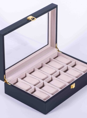 A tetején lévő betekintő ablaknak köszönhetően folyamatosan látszódnak a behelyezett órák, melyek az üveg ablaknak köszönhetően nem porosodnak.